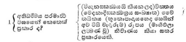 (විඤ්ඤාණස්කන්ධය යි කියන ලද) චිත්තය (වේදනාස්කන්ධත්රය සංඛ්යාත) චෛතසිකය (භූතොපාදායභෙද හෙයින් අටවිසි වැදෑරුම්) රූපය (මාර්ගඵලාලම්බණ වූ) නිර්වාණය කියා සතර ප්රකාරයකි.